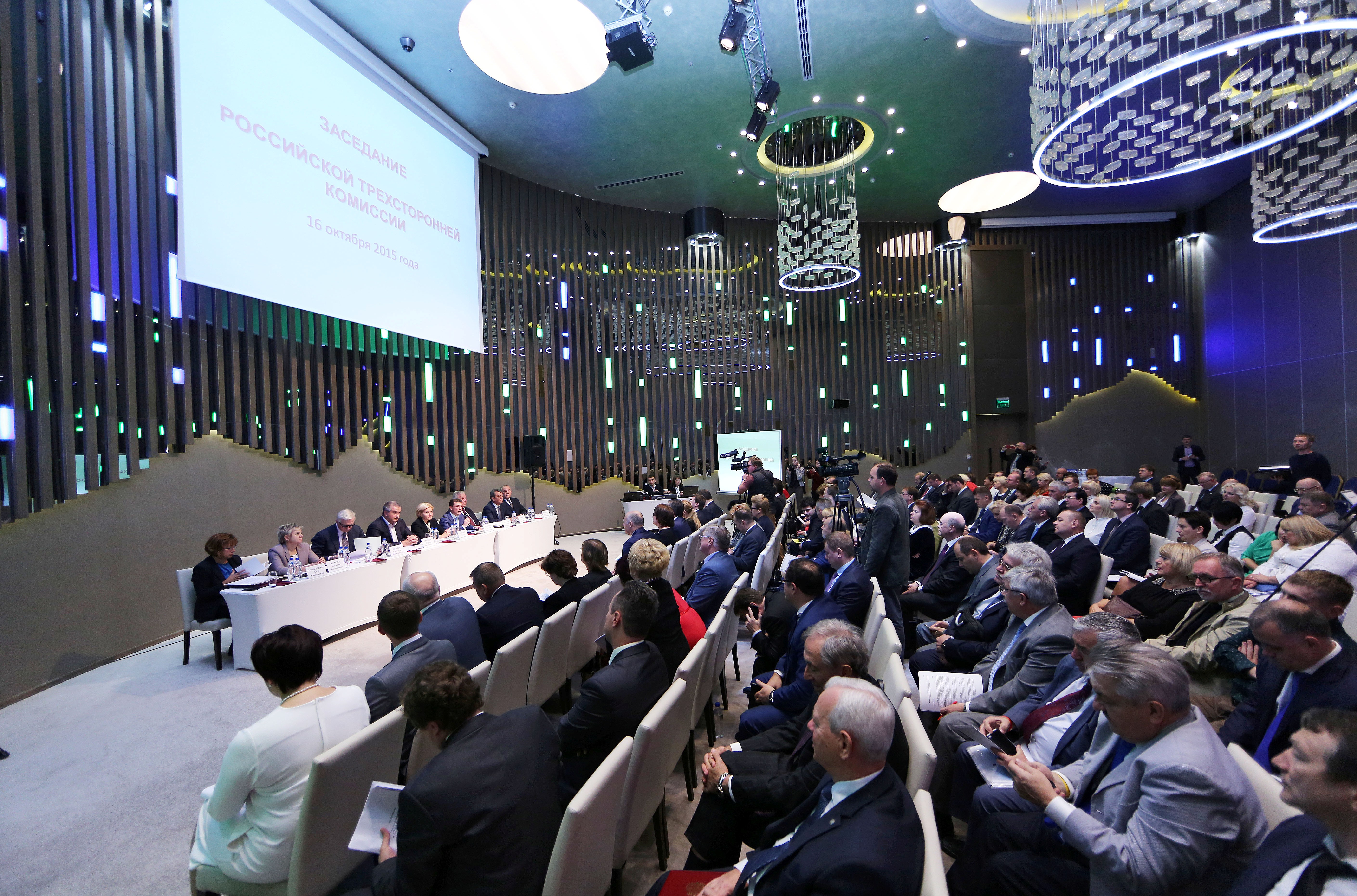 С приветственными словами к членам комиссии и приглашенным обратились Министр труда и социальной защиты Российской Федерации Максим Топилин, председатель Федерации Независимых Профсоюзов России Михаил Шмаков, Президент Российского союза промышленников и предпринимателей Александр Шохин.