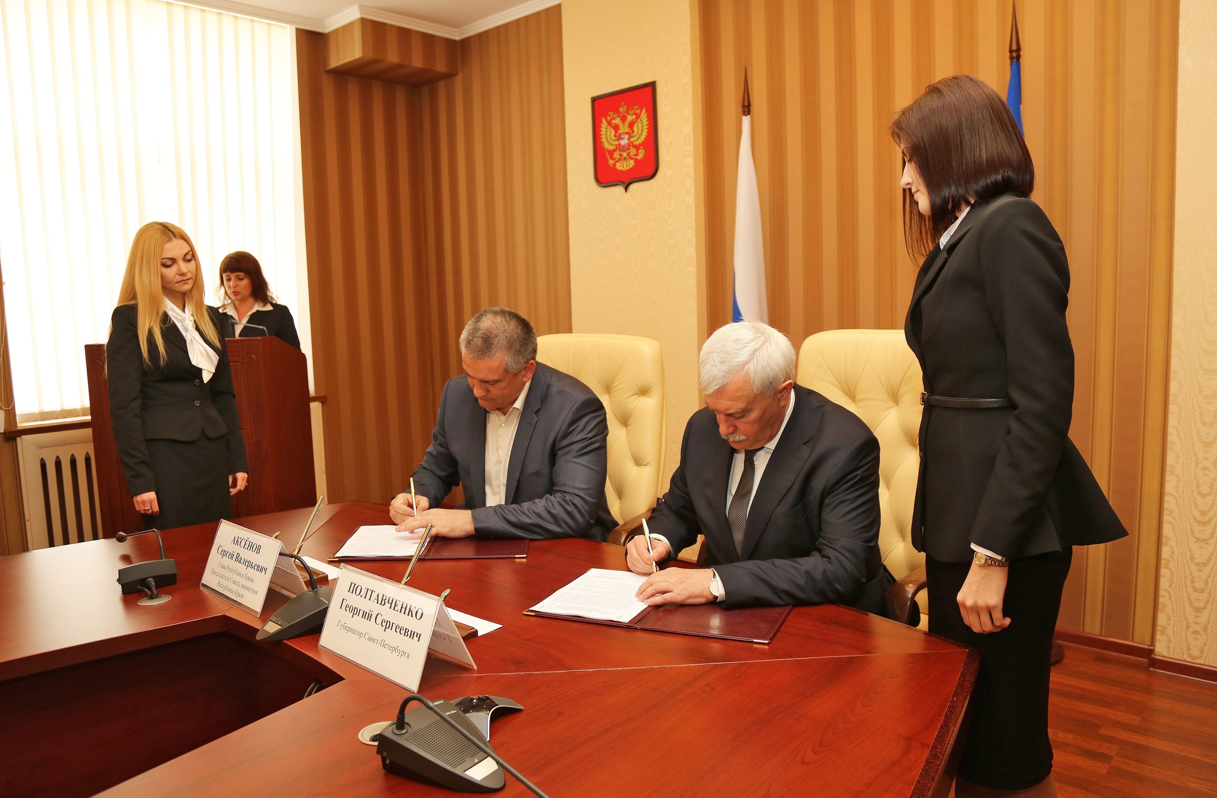 Глава Республики Крым Сергей Аксёнов подписал план мероприятий по реализации соглашения о торгово-экономическом, научно-техническом, социальном и культурном сотрудничестве на 2015-2018 гг. с Губернатором Санкт-Петербурга Георгием Полтавченко.